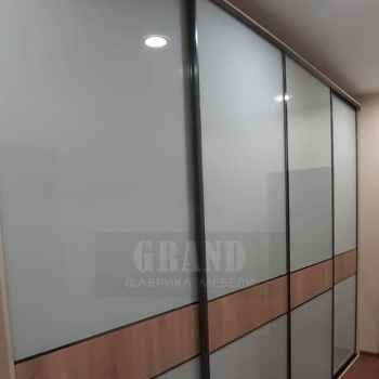 Шикарный, большой шкаф-купе шириной 4 метра и высотой 2720 Двери-купе комбинированные 4 штуки в классическом профиле графит браш, наполнение дверей стекло Оракал цвет белый и вставка дуб санома. Внутри штанги, ящики и брючницы. Красивый, большой, вместительный шкаф!
