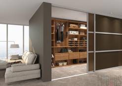 - Выделения большего количества свободного пространства. Если переместить одежду, обувь, сумки в одно место, то в остальных комнатах появится больше места. Особенно, если избавиться от громоздких шкафов, комодов, полок.